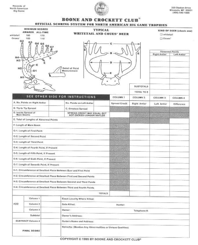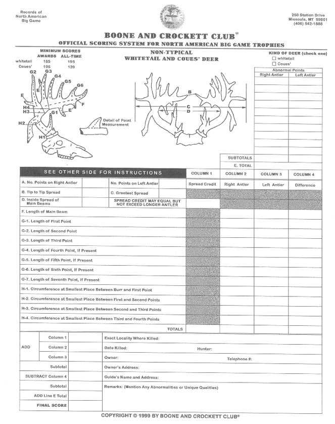 Boone and Crockett Score Sheets- Click for each scoring table.