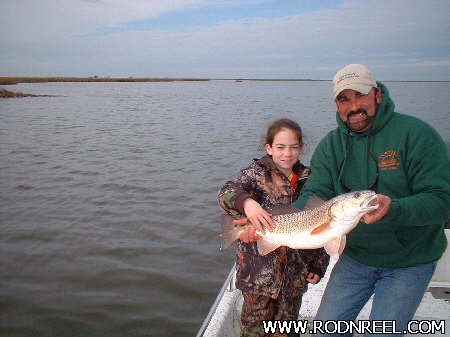 Gary Cassard with daughter Alyssa Beth who caught a nine pound redfish. She beat his by three pounds.