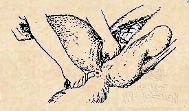 turning the body belly down or hanging animal head down. Prop the body cavity