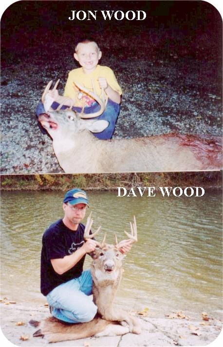 Dave Wood (bottom photo) and Son, Jon (top photo) Show off his 10 point 202# dressed Killed Oct. 29 , 2003 Monroe, Mi. Green score 127 1/2 Mathews ultra light Killed 5:15 p.m.