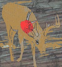 The vital areas of the Whitetail deer include the brain, spinal column, jugular vein (which runs through the neck), lungs, heart and the liver. A deer hit in any one of these areas will not travel far. However, the heart lung area offers the largest target and should be your preferred shot. The ideal shot would be one where the deer is standing in the open and in a broadside position under 30 yards away. In the woods a deer rarely presents this type of shot, they are partially screened by brush and vegetation, moving or at a less than ideal range for a clean kill. Regardless of the circumstances the best bet is to aim for the heart-lung area. See the chart below for some possible shots that may be presented: