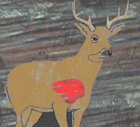 Away (steep angle): About 55 percent of the heart-lung area is exposed. Aim along an imaginary line exiting low on the far shoulder. In this position the deer is not likely to see your movement.